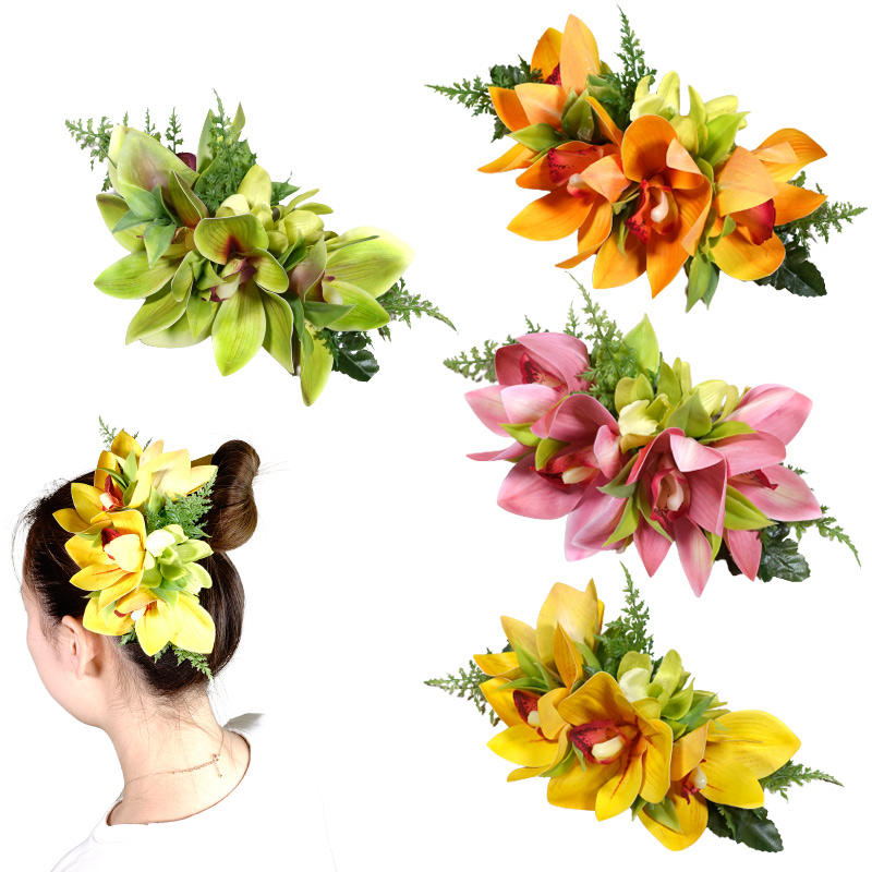 受注生産品 フラダンス衣装 シンビジューム クリップ 黄色 緑 ピンク オレンジ [sw-hc-2015]