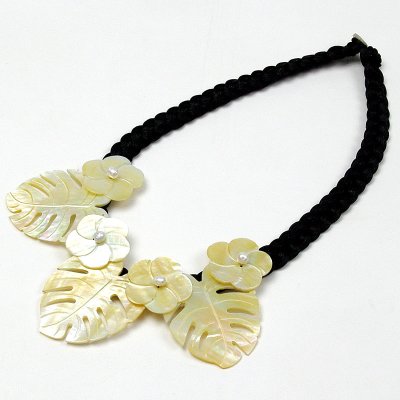 シェル・ネックレス【3モンステラ&4プルメリア/ホワイト×ブラック】