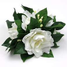 シルクフラワー素材使用のガーデニア・ヘアクリップです。ガーデニアが7輪付いた、まるで本物のように丁寧に製作されており、舞台映えのするヘアクリップとなっております。