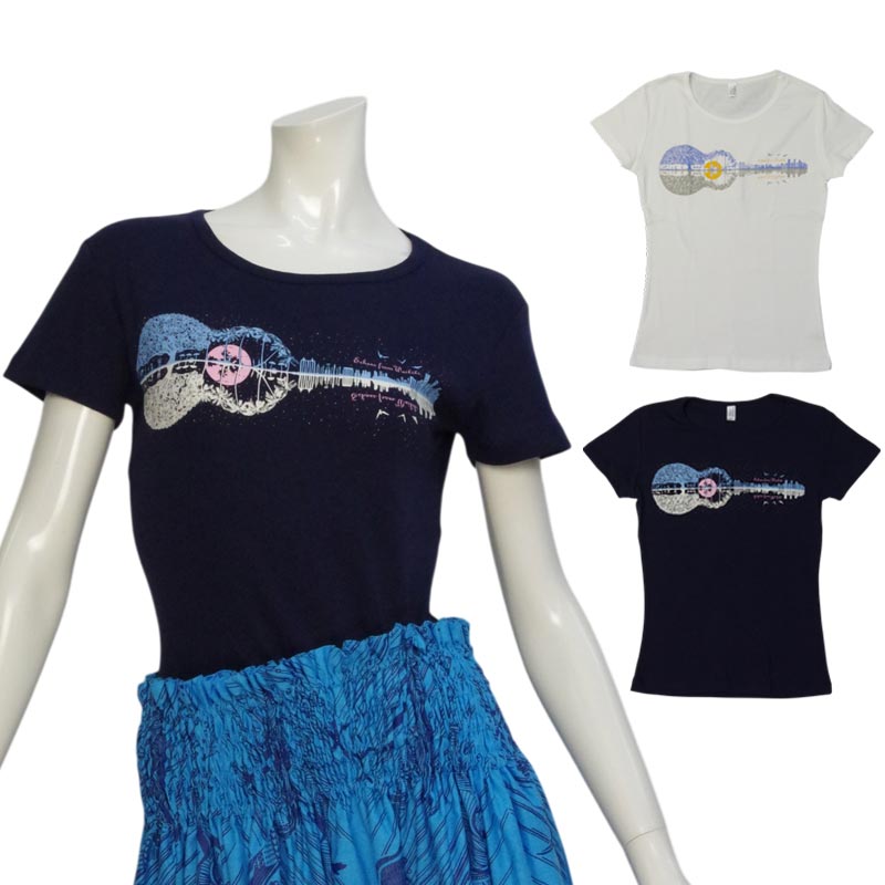 ウクレレ柄 6.2oz フライス 半袖 Tシャツ 白地 紺地 ネコポス送料無料 [tsr027-1]