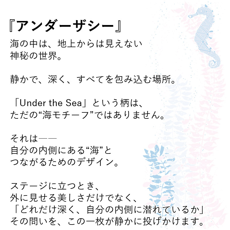 タツノオトシゴがゆったりと泳いでいる海の中をイメージした可愛らしいデザインです。