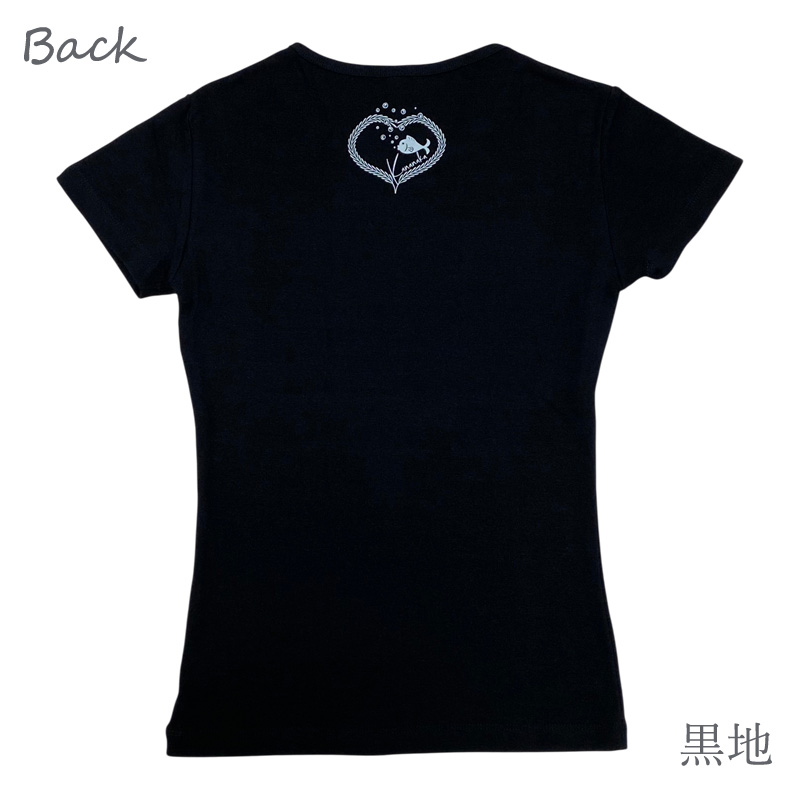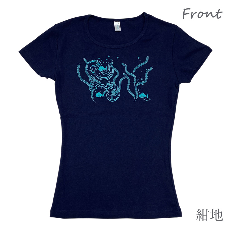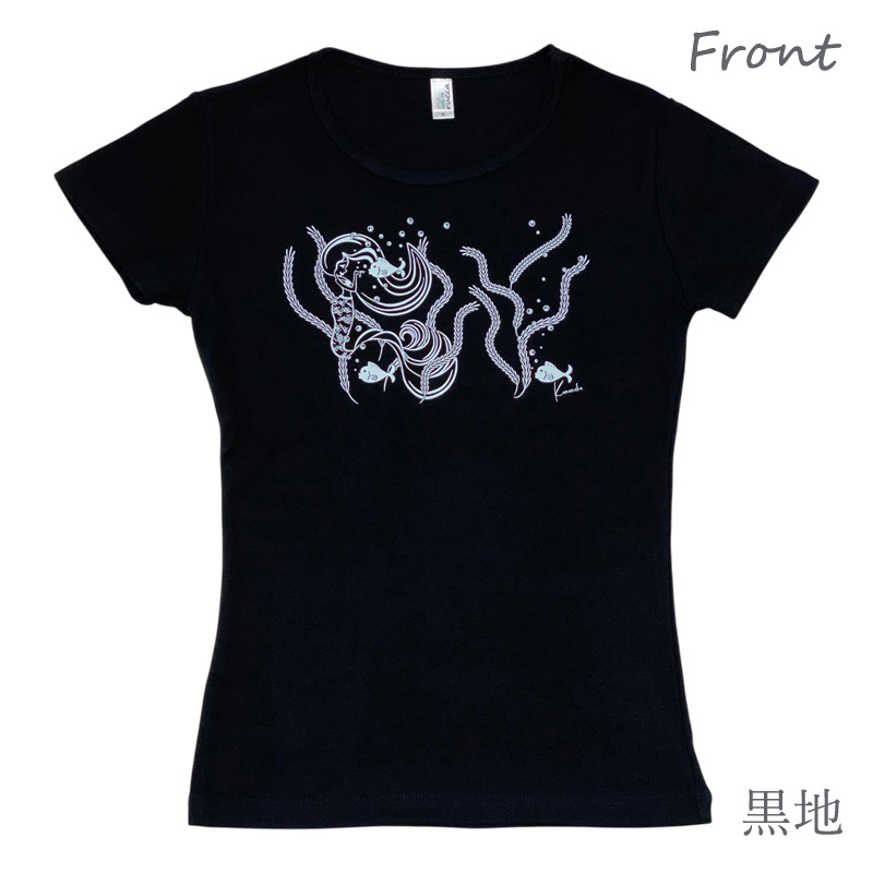 そんなマーメイド伝説をモチーフに海の中で海藻や魚たちと遊んでいるカナナカをプリントしたTシャツとなっております。