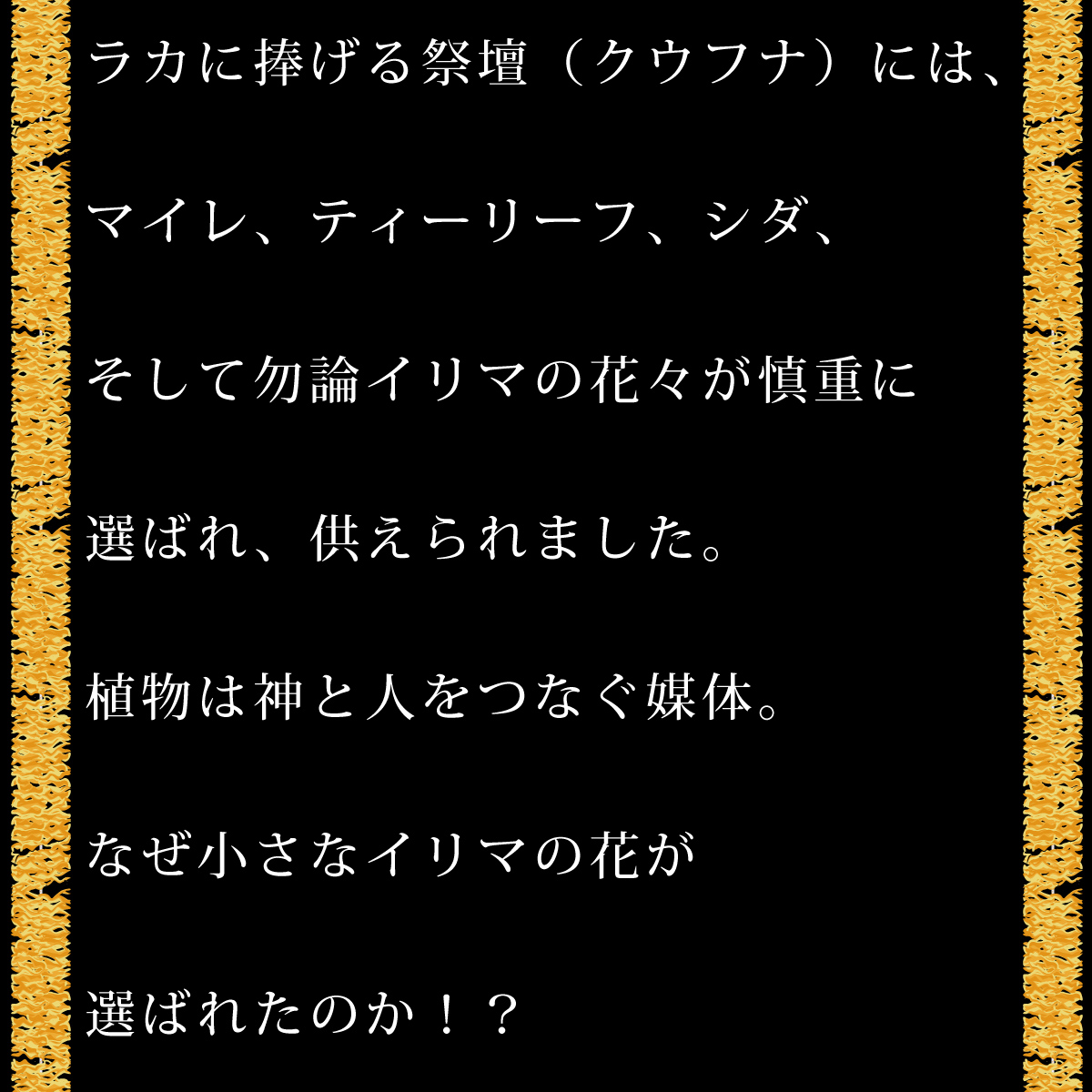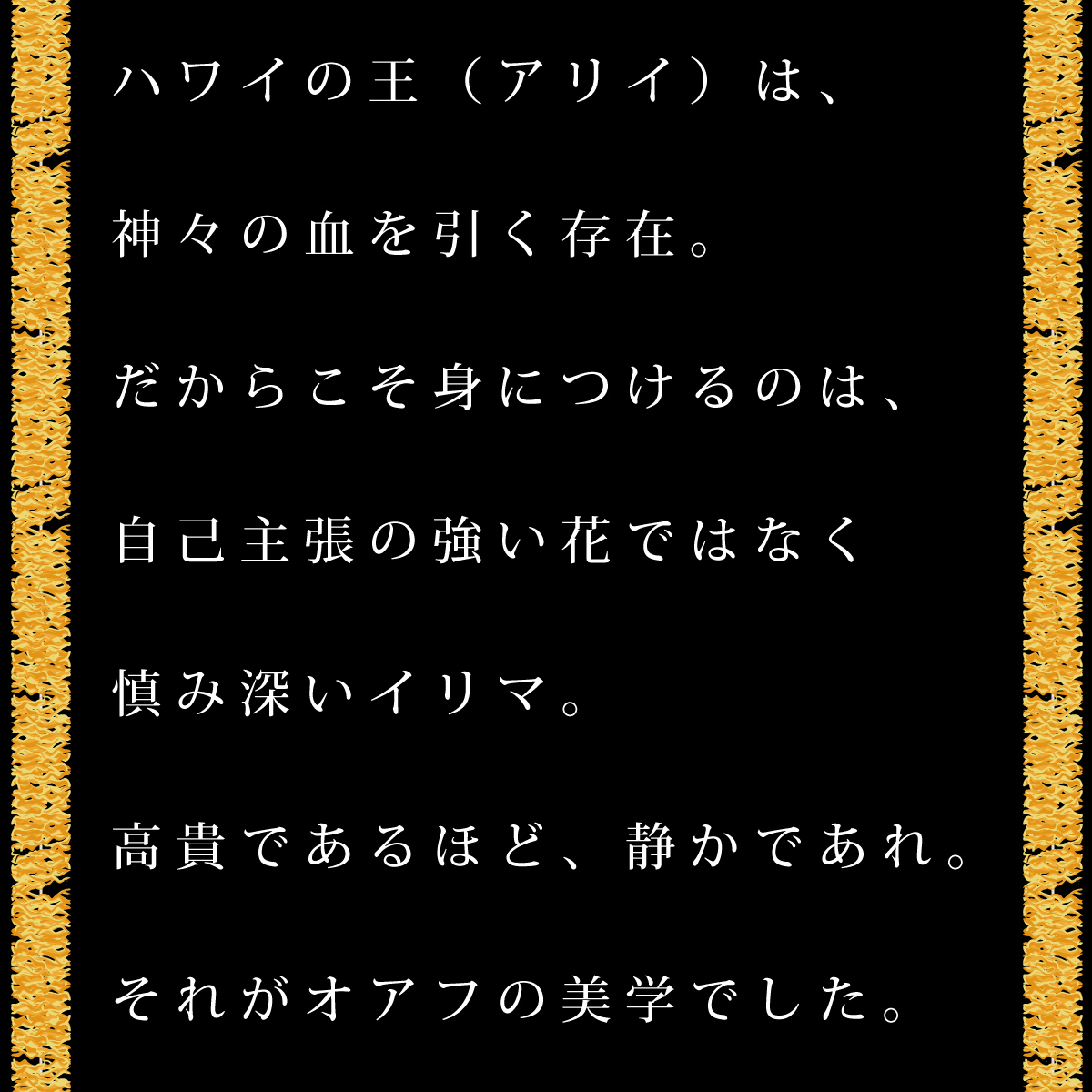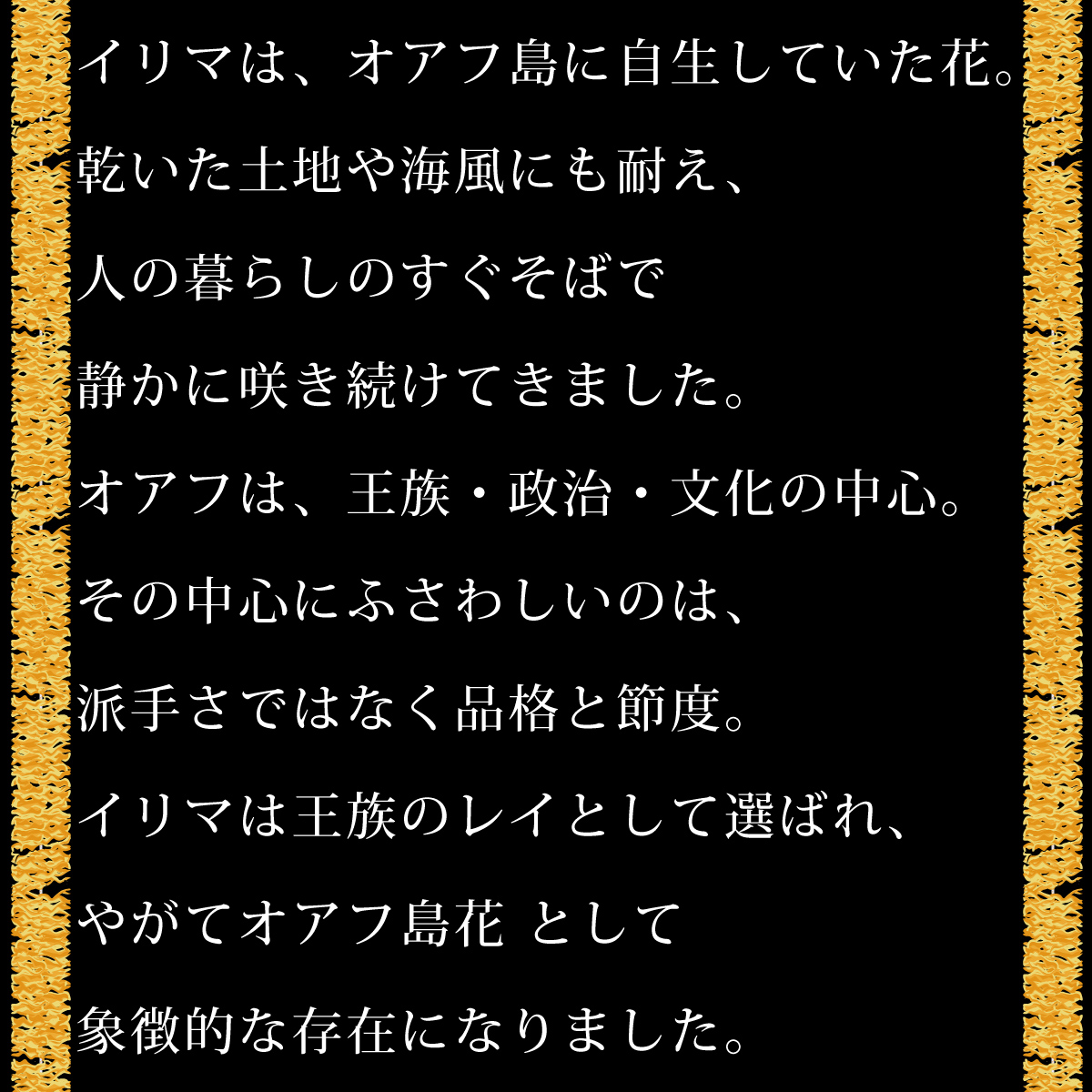 王族の島・文化の中心・祈りの場所。その象徴に選ばれたのは、控えめで、誠実な花でした。