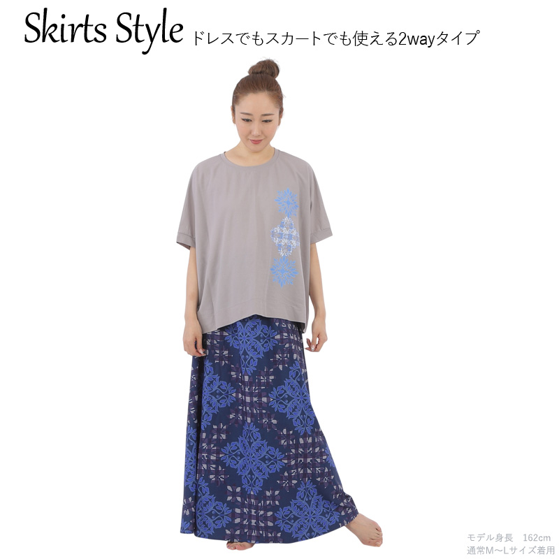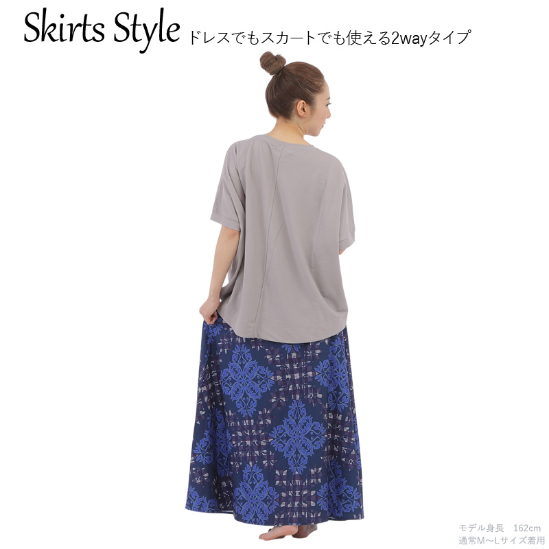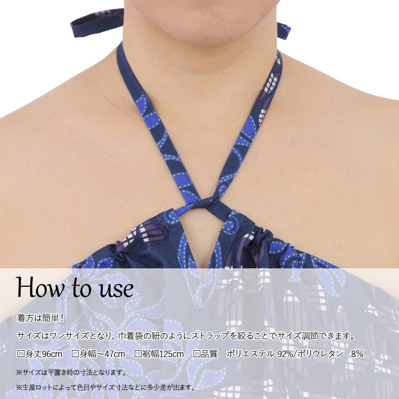 ・ドレスでもスカートでも使える2Way仕様 ・接触冷感でサラッとした肌触り♪ ・洗濯機で洗えてアイロンがけ要らずなお手入れ簡単な生地 ・お出かけ時や旅行先に持っていくと便利! ・サイズ調整もひもを引っ張るだけ!簡単です。 ・子供から大人まで様々な方にご利用いただいています。 |