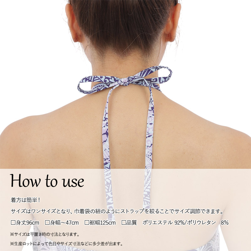 ・ドレスでもスカートでも使える2Way仕様 ・接触冷感でサラッとした肌触り♪ ・洗濯機で洗えてアイロンがけ要らずなお手入れ簡単な生地 ・お出かけ時や旅行先に持っていくと便利! ・サイズ調整もひもを引っ張るだけ!簡単です。 ・子供から大人まで様々な方にご利用いただいています。 |