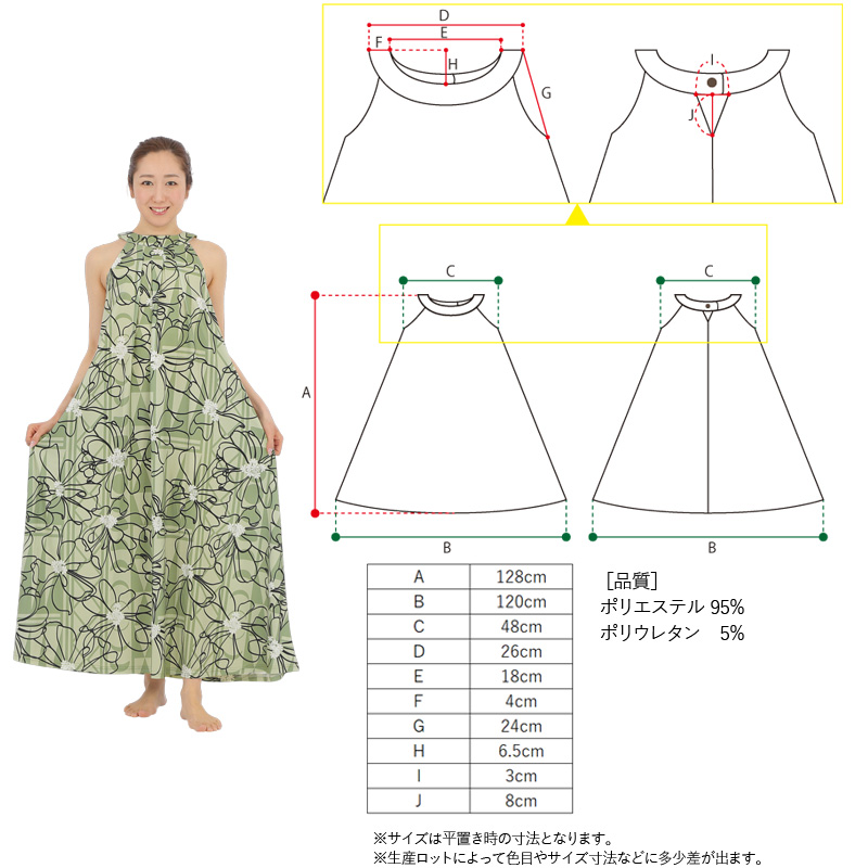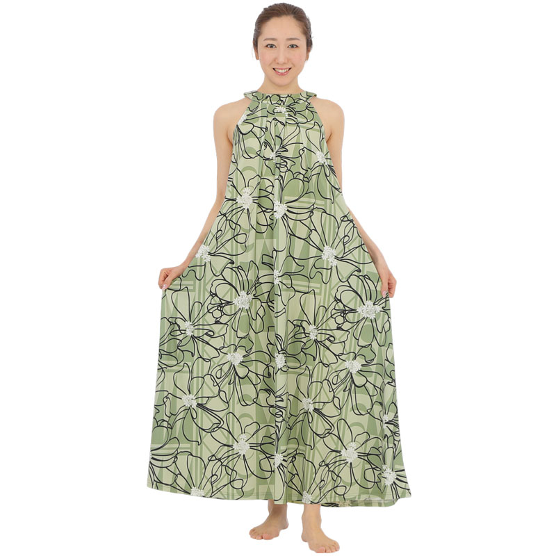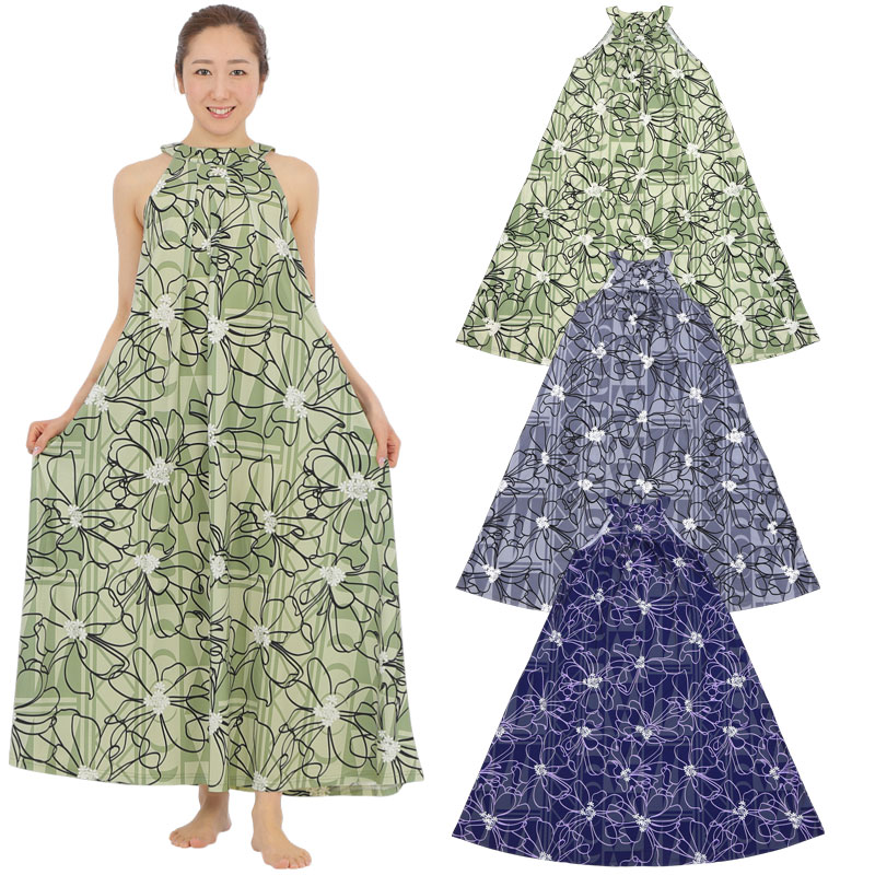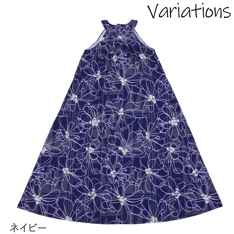 多く残されているハワイ神話でも人気のある、ナウパカのお花にまつわる神話をモチーフにしたムームーママのオリジナル柄生地を使用したドレスとなります。