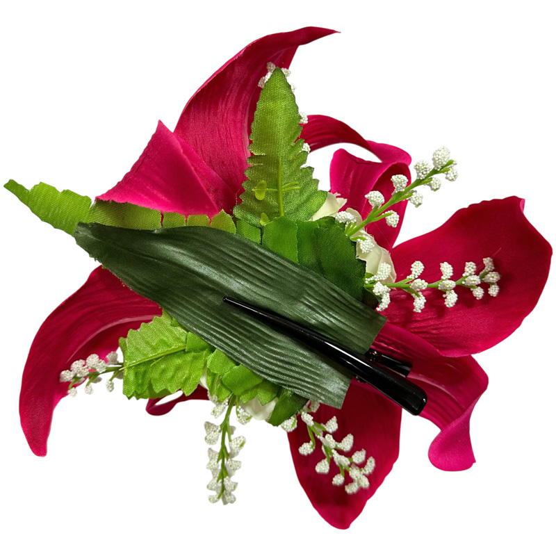 カサブランカ ヘアクリップ 赤ピンク シルクフラワー素材 [OHC001-4]
