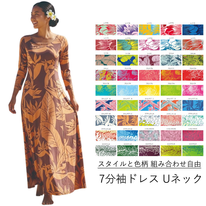 受注生産 カスタムオーダー スタイル×色柄を好きな組み合わせで 7分袖ドレス Uネック [nnd008]