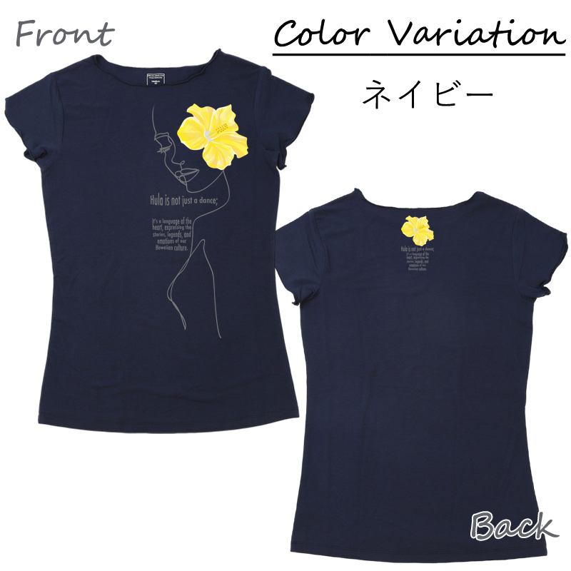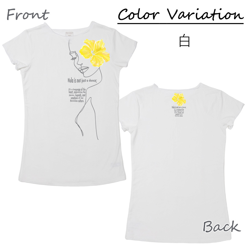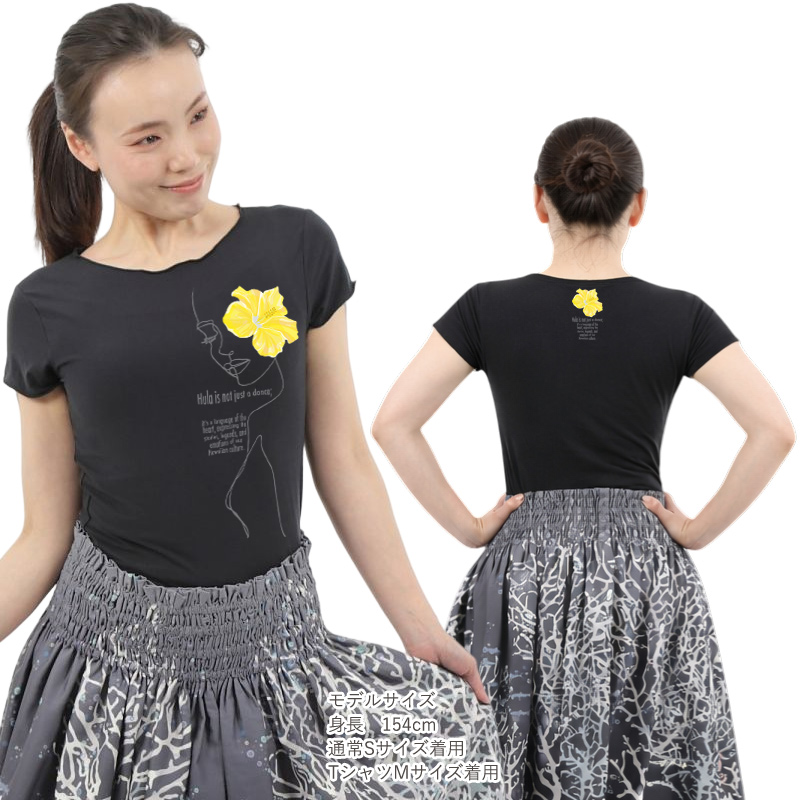 ALOALO 黄色ハイビスカスガール柄 プリント 半袖 Tシャツ|モダール レーヨン フレンチスリーブ [slim-sst016-3]